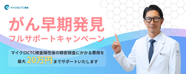 なお、マイクロCTCの提供会社である株式会社セルクラウドより、【陽性後の精密検査にかかる費用を最大20万円までサポートキャンペーン】が実施中(2025年12月31日まで受検の方)です。